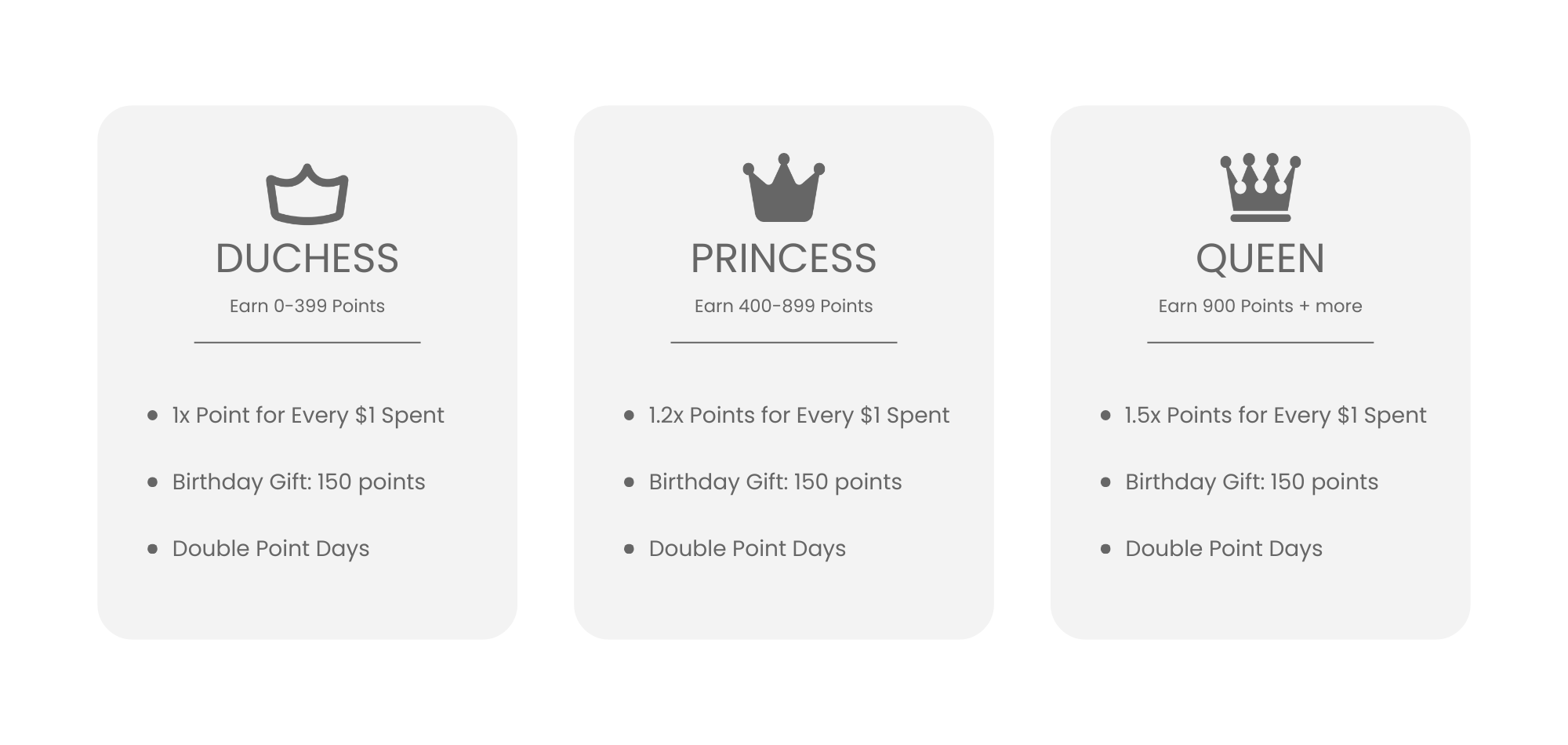 Welcome to Club Crush! Club Crush is about rewarding you, our loyal Salty Crush Babes! There are three tiers to Club Crush Rewards; Duchess, Princess and Queen. To claim your next crown you need to do two things: earn Crush Points and refer your friends. Start by becoming a Duchess and join Club Crush Rewards.